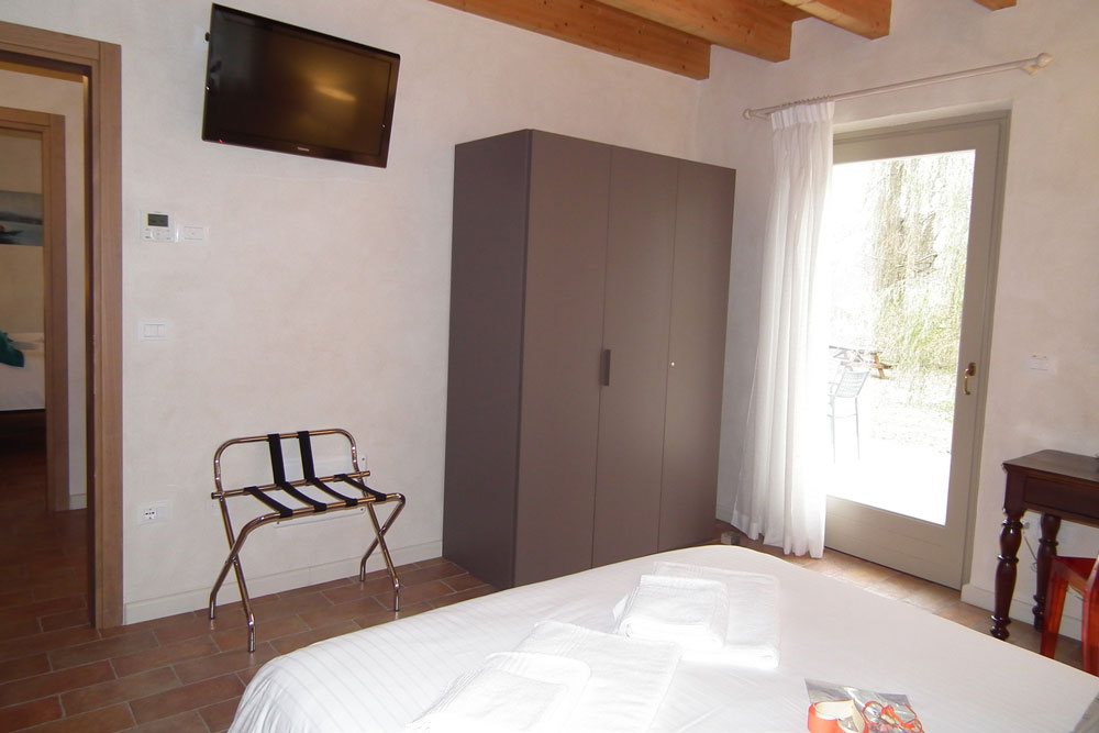 Questa nostra tipologia di camera è una valida soluzione per soggiorni di famiglie o gruppi di amici, mantenendo ognuno la propria riservatezza e godendo di ampi spazi. Due camere matrimoniali distinte ma comunicanti, ognuna con il proprio accesso esterno e un ampio bagno in comune.