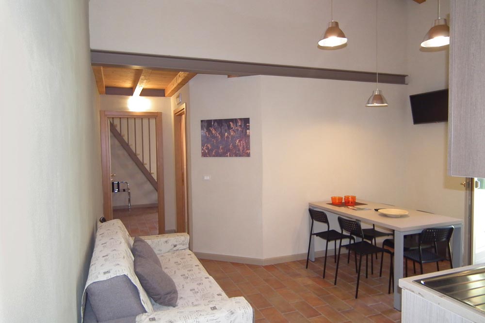 Das Apartment „IL TERRAZZO“ ist eine geräumige Wohnung mit Küche und Wohnbereich, Schlafzimmer und einem großen Hängeboden. Ideal für Familien und Paare, die die Ruhe zu schätzen wissen. Es befindet sich im ersten Stock unseres Bed and Breakfast, wo man auf der Terrasse mit Blick auf den Garten zu Mittag und zu Abend essen kann. Es ist hell, geräumig, in sanften Farben gehalten, komfortabel und gemätlich.
